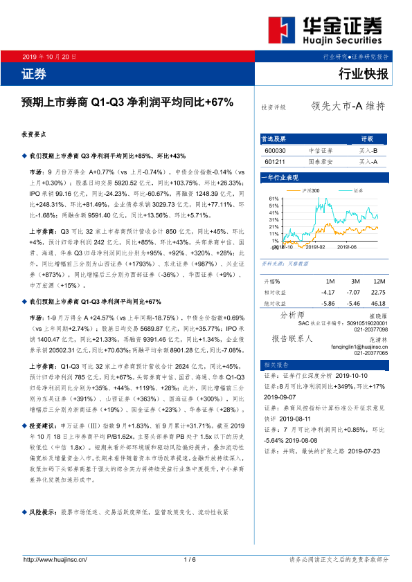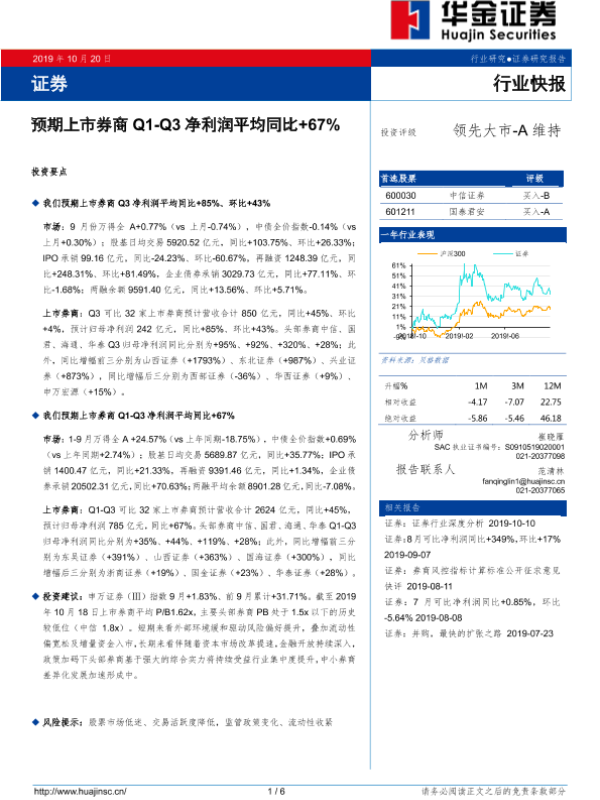 【华金证券】【20191020】证券行业快报:预期上市券商Q1-Q3净利润平均同比+67%-6页