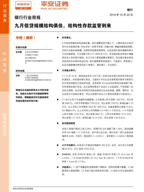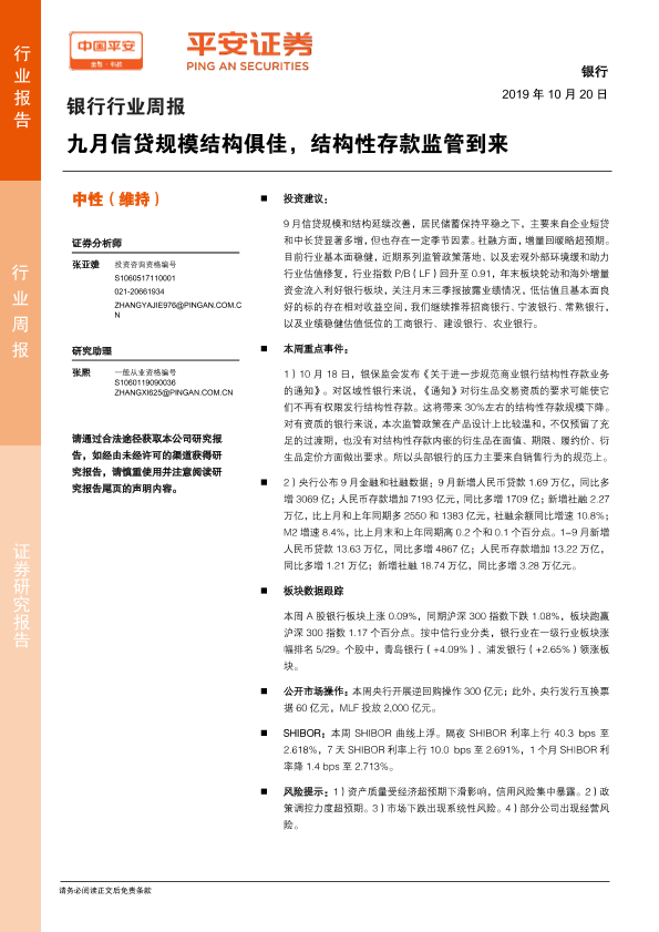 【平安证券】【20191020】九月信贷规模结构俱佳,结构性存款监管到来-4页