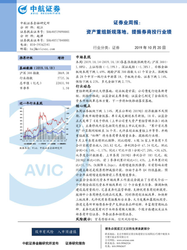 【中航证券】【20191020】证券业周报:资产重组新规落地,提振券商投行业绩-11页