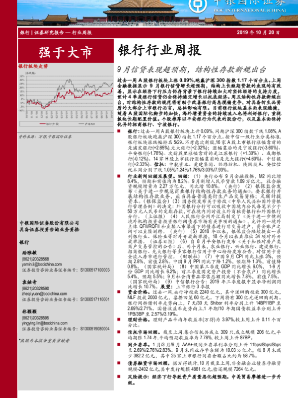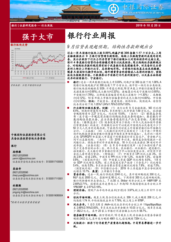 【中银证券】【20191020】银行行业周报:9月信贷表现超预期,结构性存款新规出台-17页