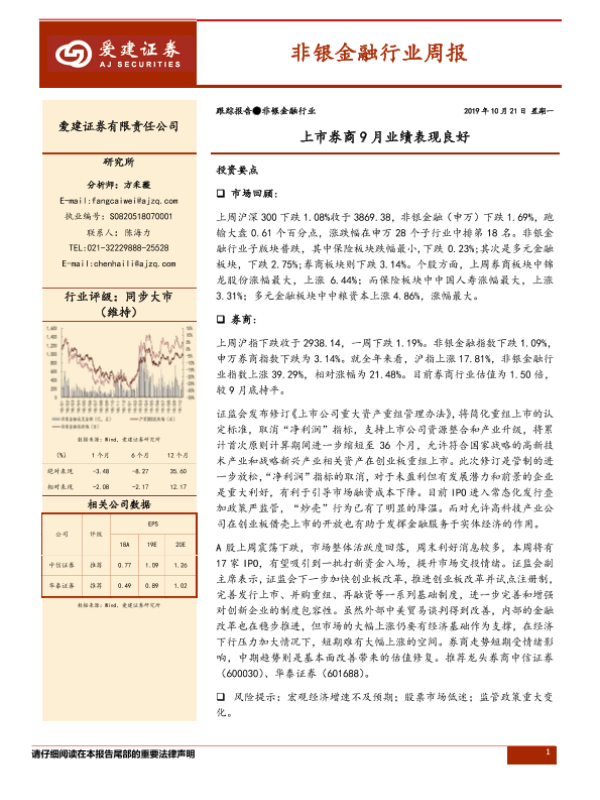 【爱建证券】【20191021】非银金融行业周报:上市券商9月业绩表现良好-11页