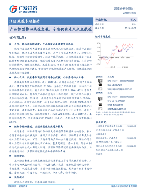 【广发证券】【20191022】产品转型推动渠道发展,个险仍将是未来主航道-20页