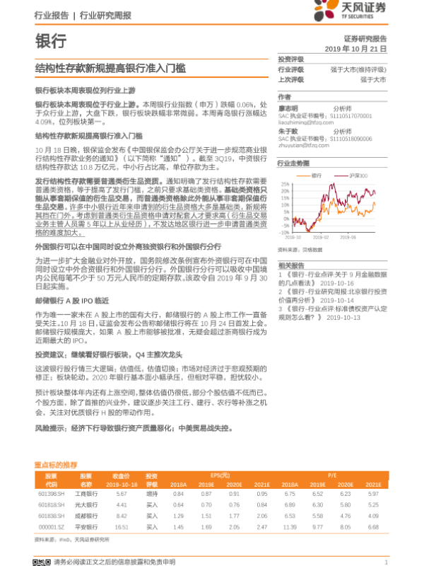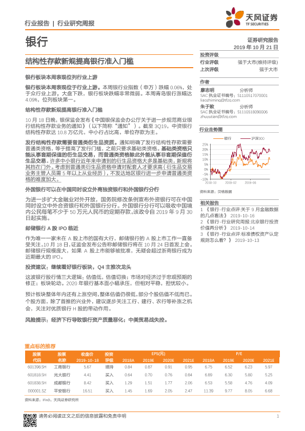 【天风证券】【20191021】结构性存款新规提高银行准入门槛-15页