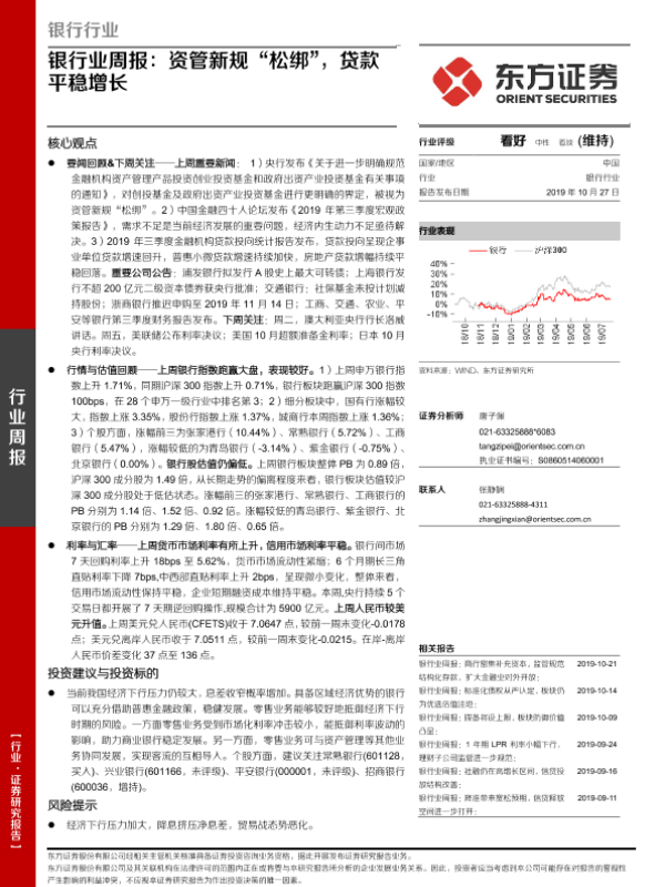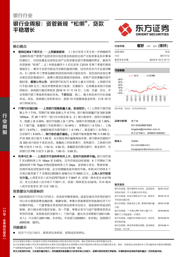 【东方证券】【20191027】银行业周报:资管新规“松绑”,贷款平稳增长-13页