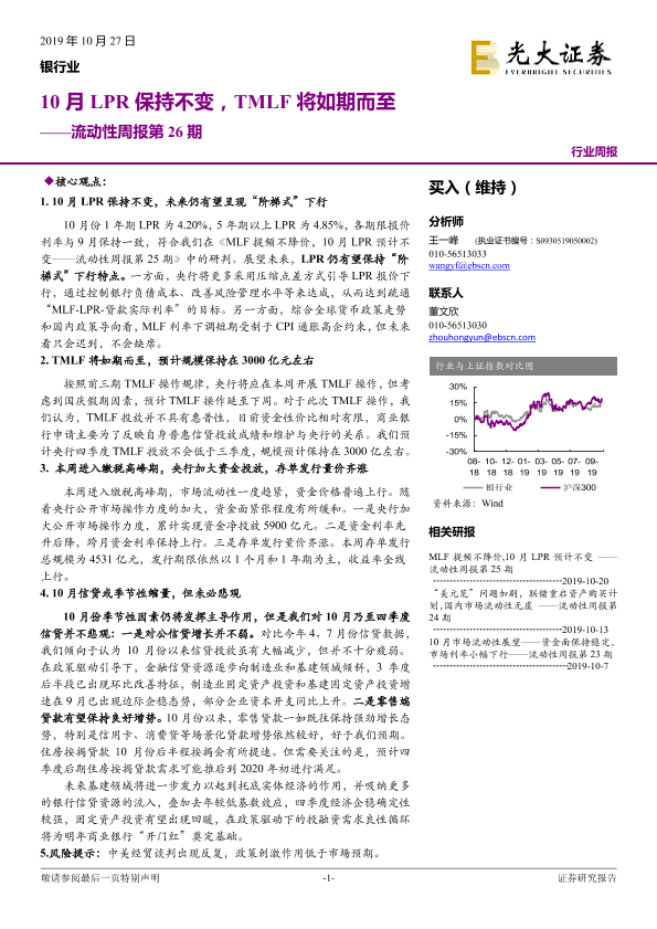 【光大证券】【20191027】银行业流动性周报第26期:10月LPR保持不变,TMLF将如期而至-7页