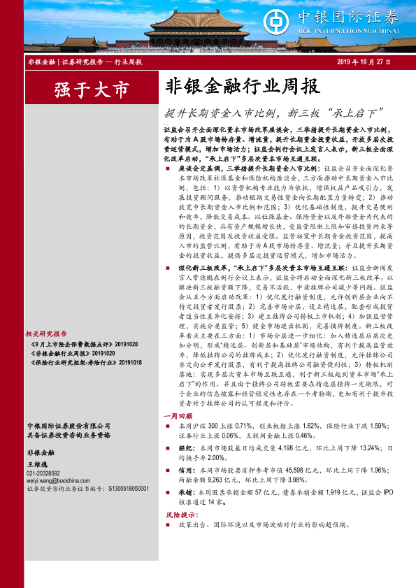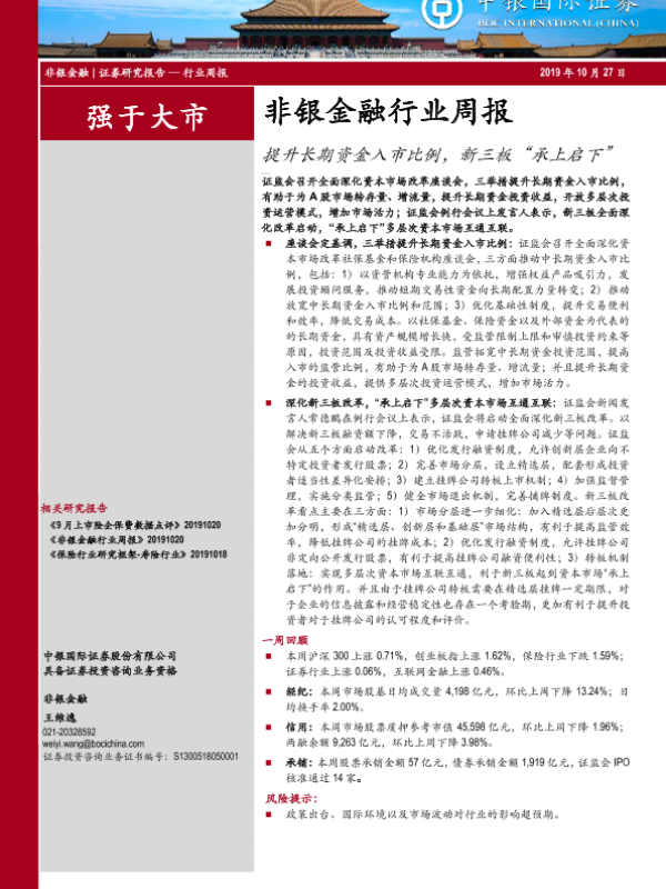 【中银证券】【20191027】非银金融行业周报:提升长期资金入市比例,新三板“承上启下”-13页