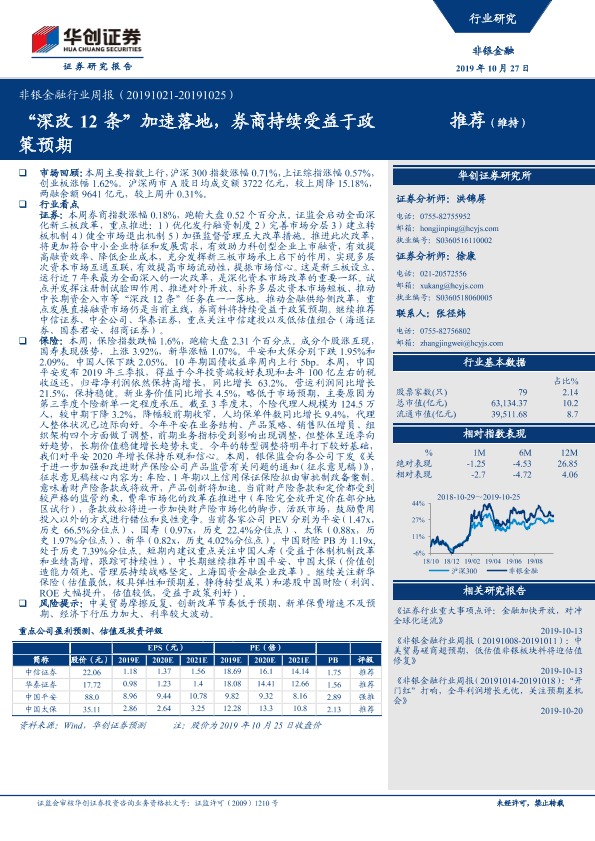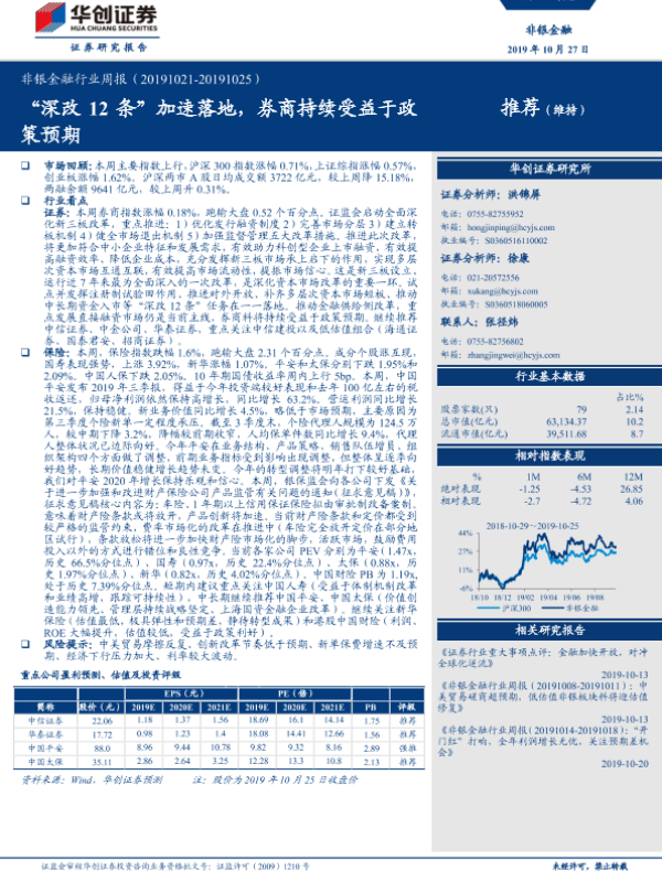 【华创证券】【20191027】非银金融行业周报:“深改12条”加速落地,券商持续受益于政策预期-20页