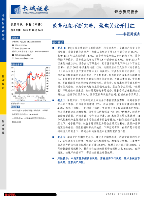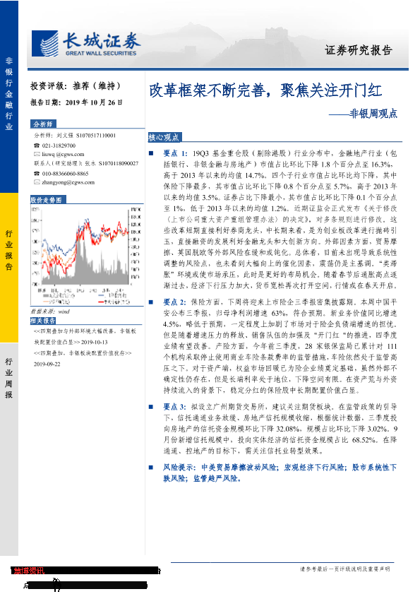 【长城证券】【20191026】非银周观点:改革框架不断完善,聚焦关注开门红-32页