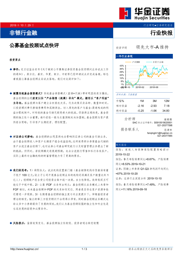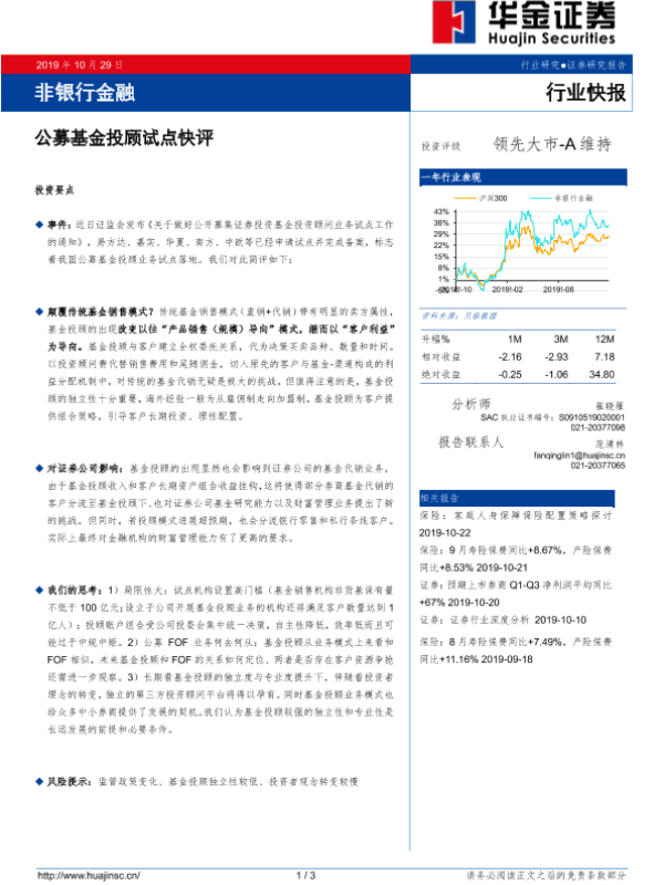 【华金证券】【20191029】非银行金融行业快报:公募基金投顾试点快评-3页