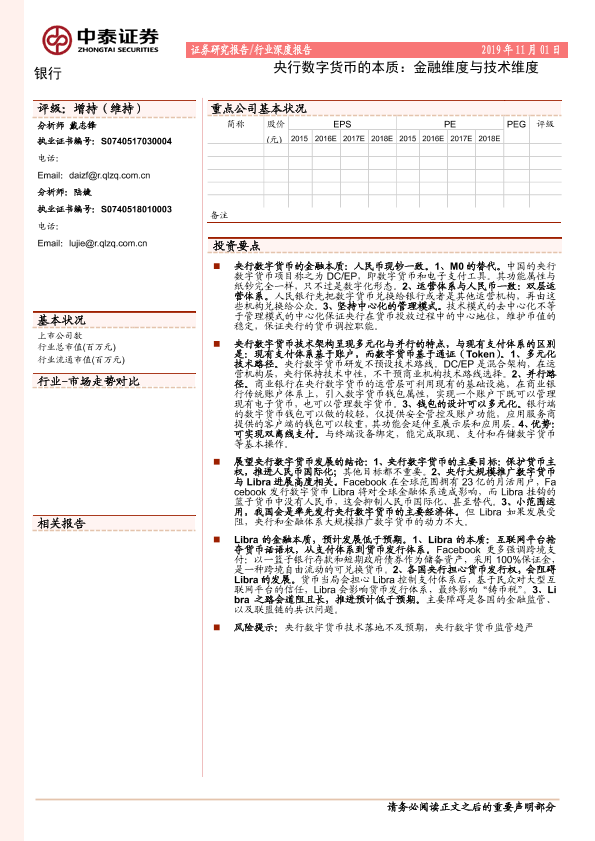 【中泰证券】【20191101】银行行业深度报告:央行数字货币的本质:金融维度与技术维度-21页