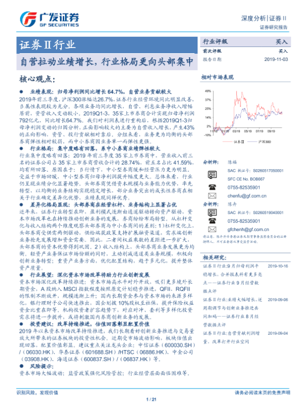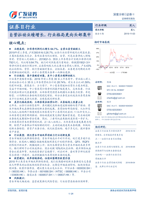 【广发证券】【20191103】证券Ⅱ行业深度分析:自营拉动业绩增长,行业格局更向头部集中-21页