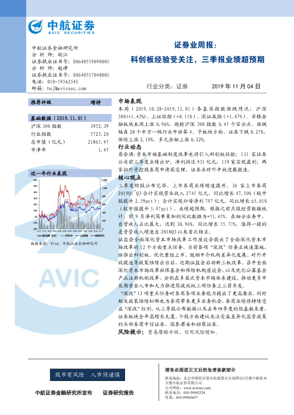 【中航证券】【20191104】证券业周报:科创板经验受关注,三季报业绩超预期-11页
