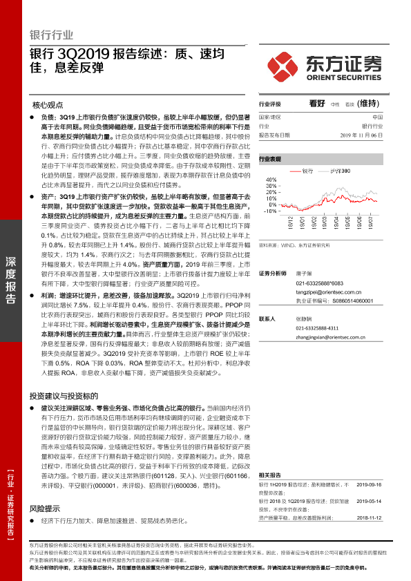 【东方证券】【20191106】银行3Q2019报告综述:质、速均佳,息差反弹-19页