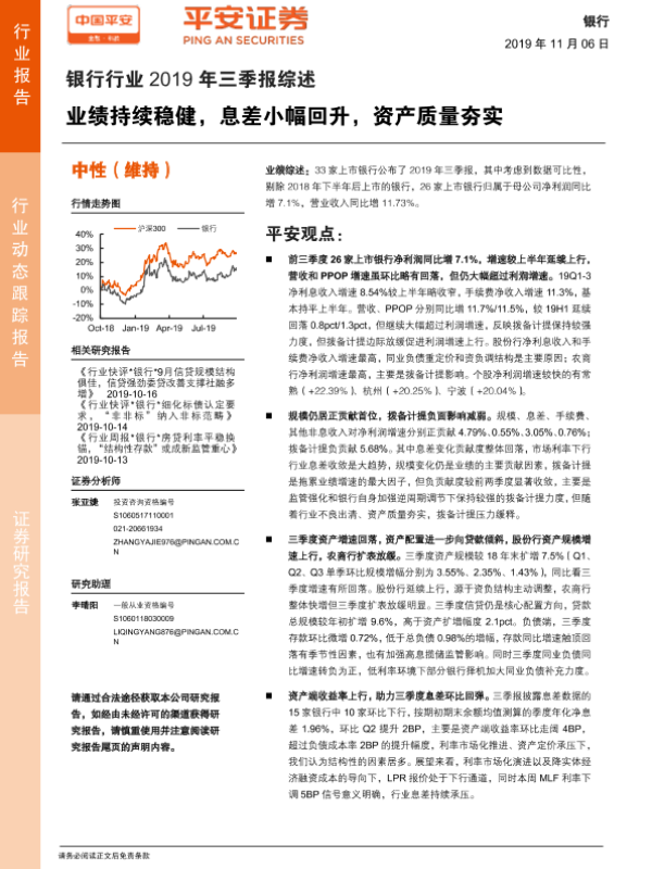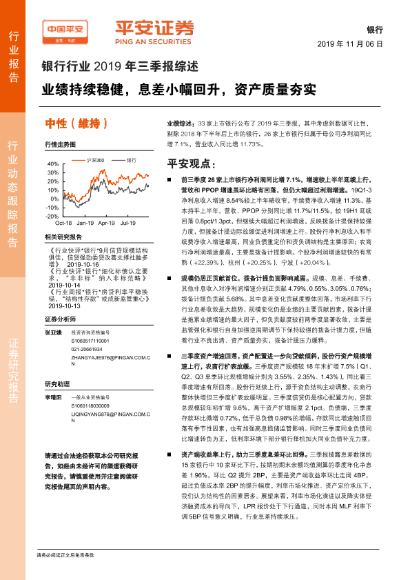 业绩分析 息差回升 拨备计提 资产质量 银行财报