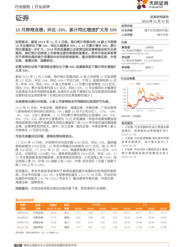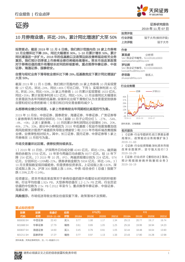 【天风证券】【20191107】10月券商业绩:环比-26%,累计同比增速扩大至50%-5页
