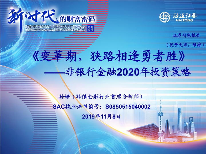 【海通证券】【20191108】非银行金融2020年投资策略:变革期,狭路相逢勇者胜-58页
