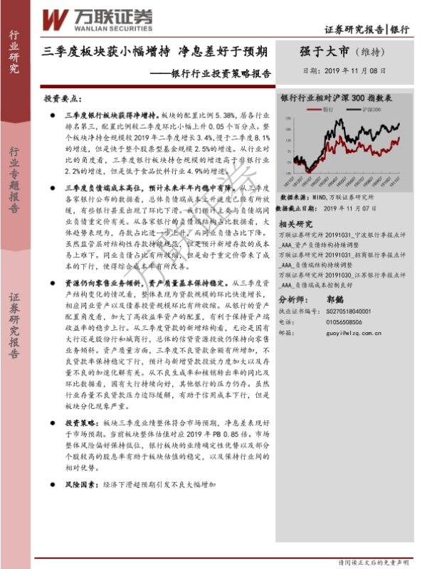 【万联证券】【20191108】三季度板块获小幅增持 净息差好于预期-15页
