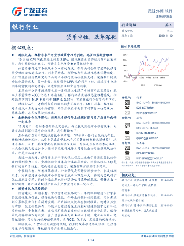 【广发证券】【20191110】银行行业跟踪分析:货币中性,改革深化-14页