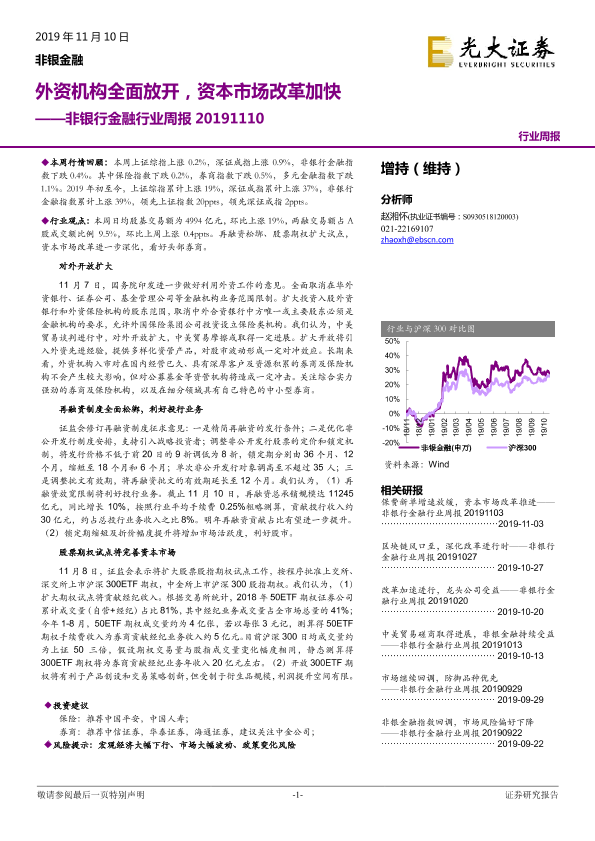 【光大证券】【20191110】非银行金融行业周报:外资机构全面放开,资本市场改革加快-14页