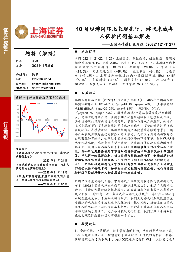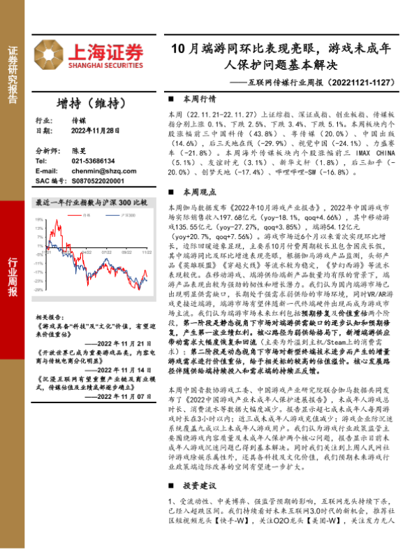 【上海证券】【20221128】互联网传媒行业周报:10月端游同环比表现亮眼,游戏未成年人保护问题基本解决-23页