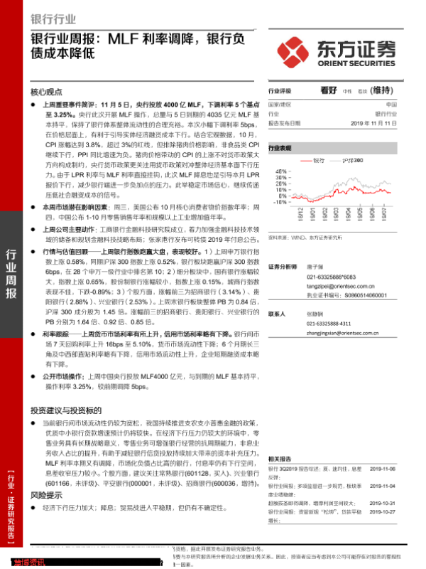 【东方证券】【20191111】银行业周报:MLF利率调降,银行负债成本降低-13页
