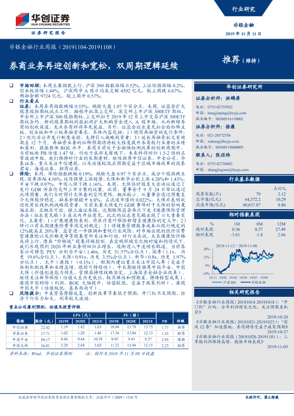 【华创证券】【20191111】非银金融行业周报:券商业务再迎创新和宽松,双周期逻辑延续-19页