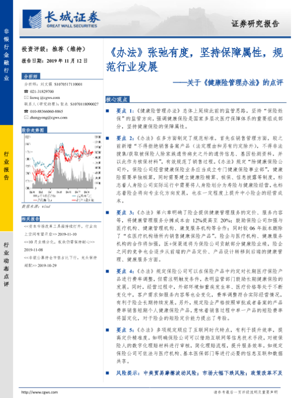 【长城证券】【20191112】关于《健康险管理办法》的点评:《办法》张弛有度,坚持保障属性,规范行业发展-9页