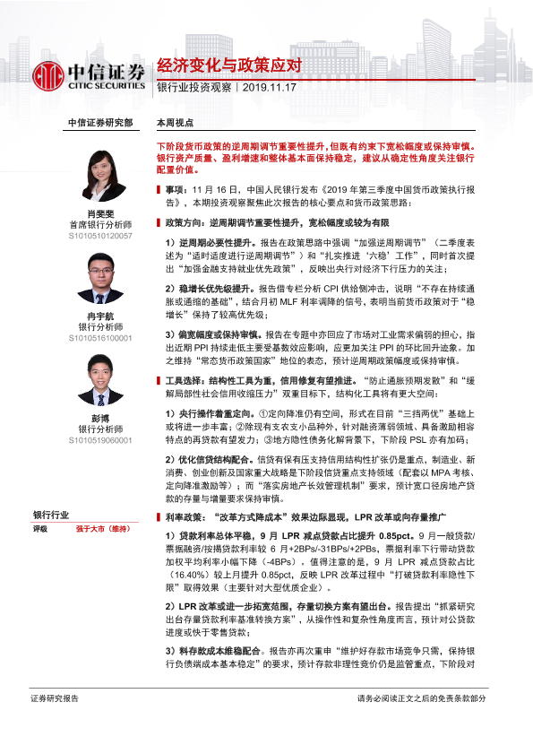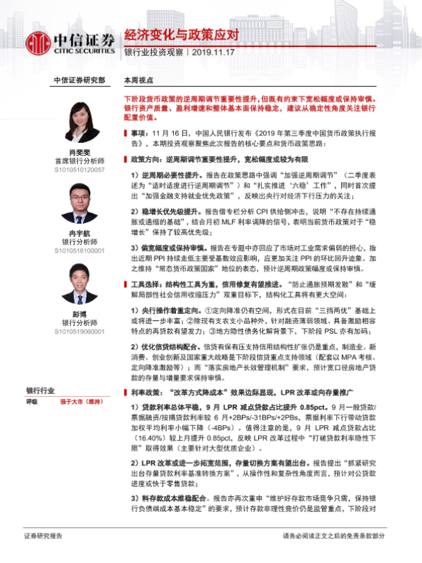 【中信证券】【20191117】银行业投资观察:经济变化与政策应对-11页
