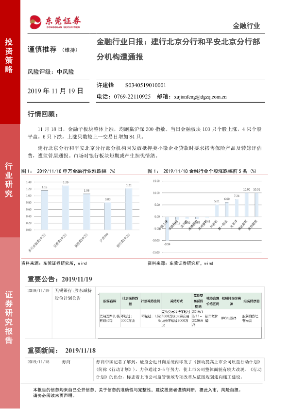 【东莞证券】【20191119】金融行业日报:建行北京分行和平安北京分行部分机构遭通报-3页