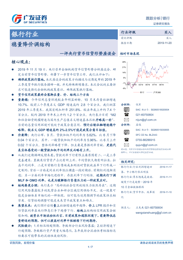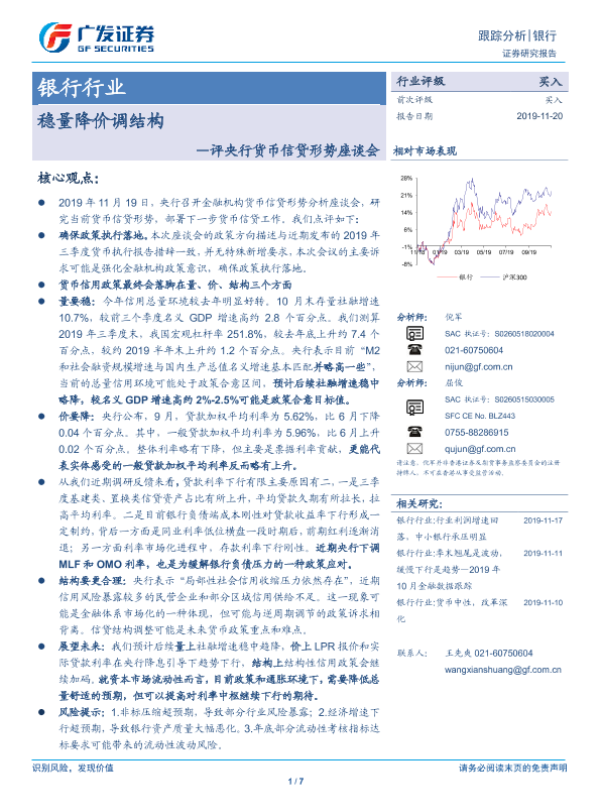 【广发证券】【20191120】银行行业跟踪分析:评央行货币信贷形势座谈会-稳量降价调结构-7页