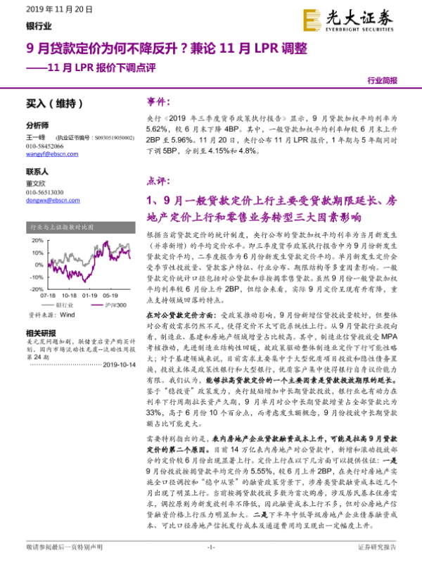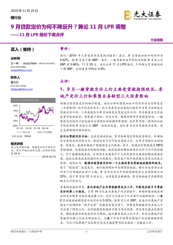 【光大证券】【20191120】银行业11月LPR报价下调点评:9月贷款定价为何不降反升?兼论11月LPR调整-5页