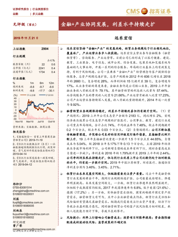 【海通证券】【20191121】多元金融行业深度报告:远东宏信-金融+产业协同发展,利差水平持续走扩-13页