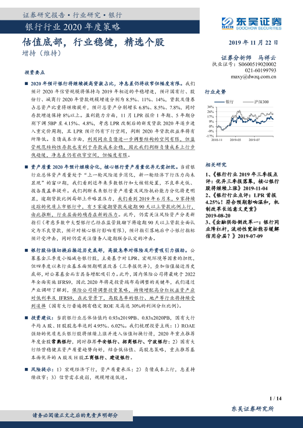 【东吴证券】【20191122】银行行业2020年度策略:估值底部,行业稳健,精选个股-14页