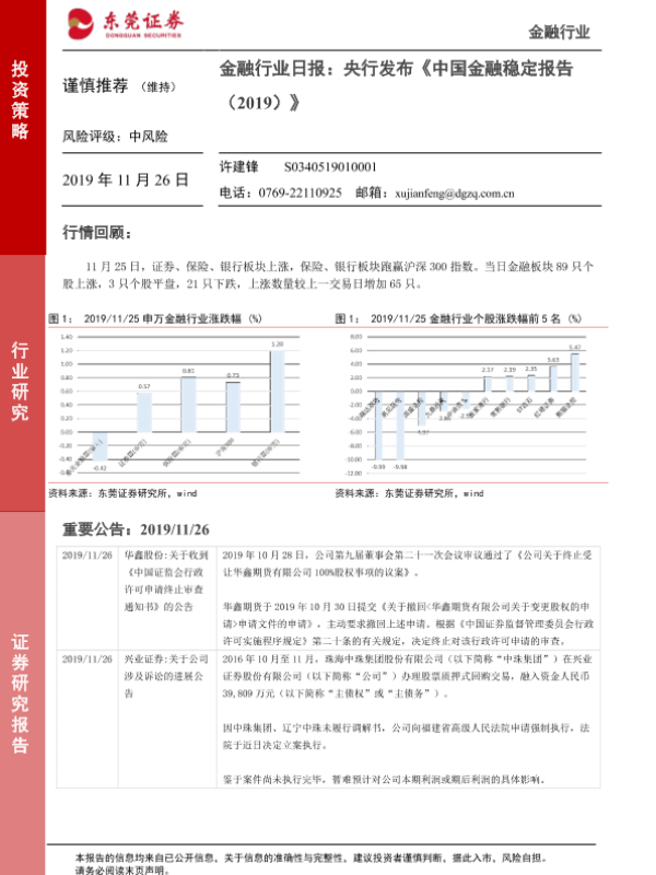 【东莞证券】【20191126】金融行业日报:央行发布《中国金融稳定报告(2019)》-4页