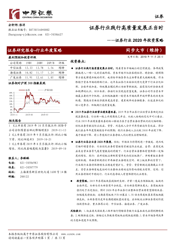 【中原证券】【20191125】证券行业2020年投资策略:证券行业践行高质量发展正当时-33页