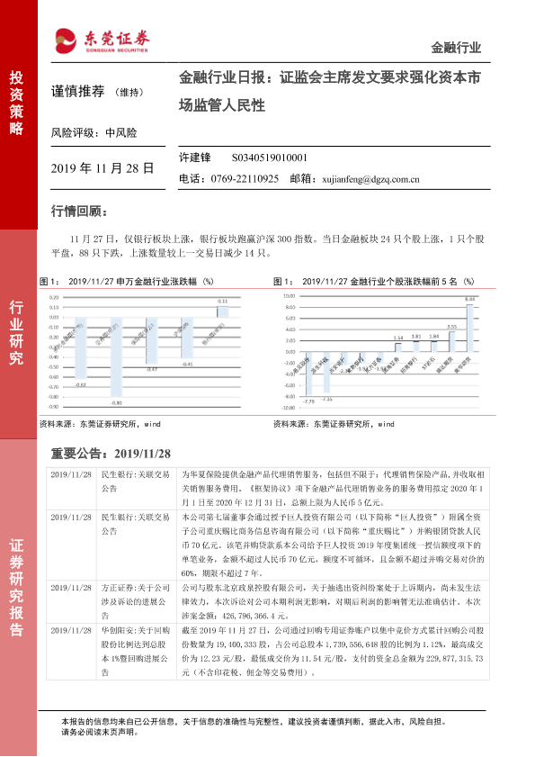 【东莞证券】【20191128】金融行业日报:证监会主席发文要求强化资本市场监管人民性-4页