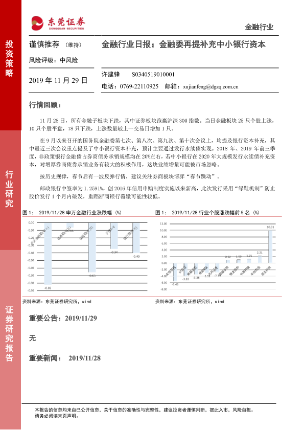 【东莞证券】【20191129】金融行业日报:金融委再提补充中小银行资本-3页