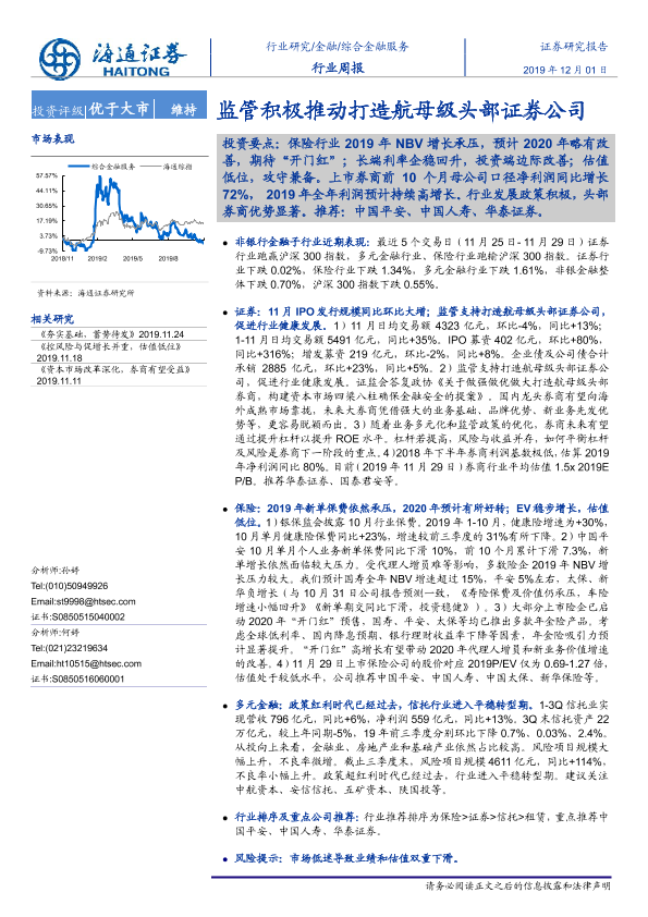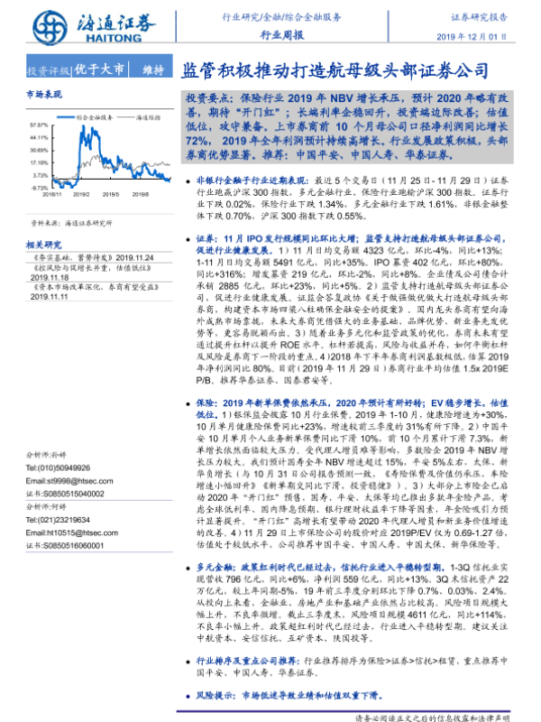【海通证券】【20191201】综合金融服务行业周报:监管积极推动打造航母级头部证券公司-9页