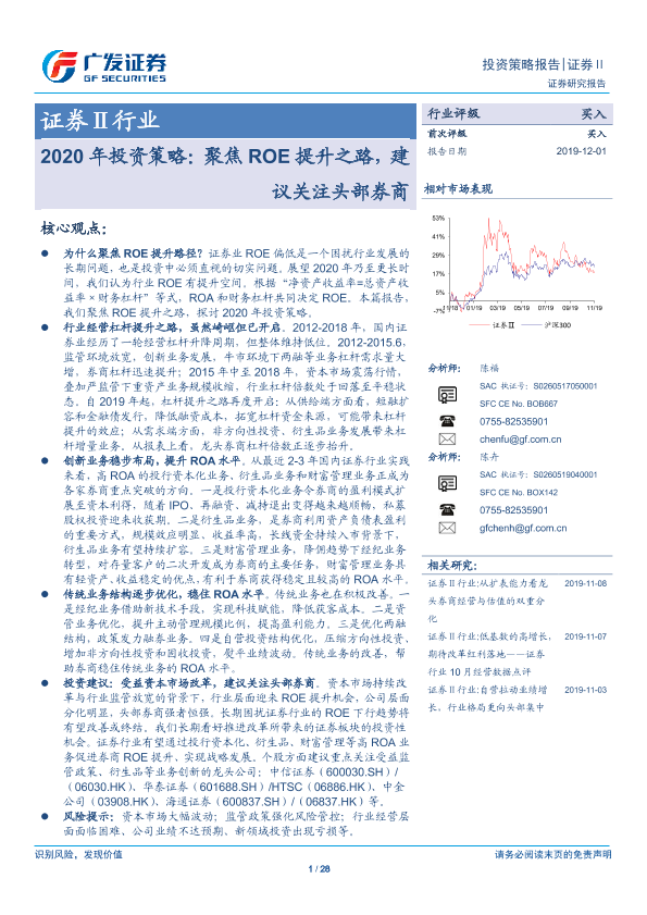 【广发证券】【20191201】证券Ⅱ行业2020年投资策略:聚焦ROE提升之路,建议关注头部券商-28页