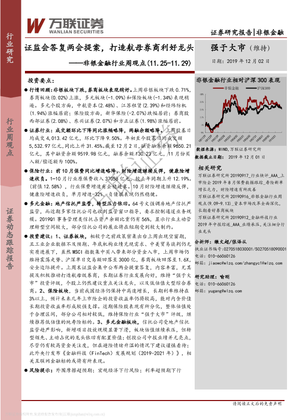 【万联证券】【20191202】非银金融行业周观点:证监会答复两会提案,打造航母券商利好龙头-9页