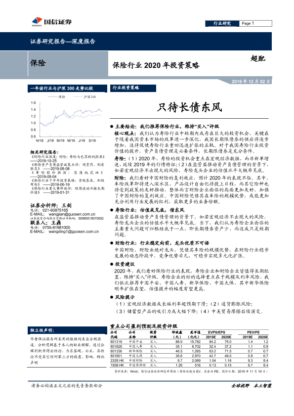【国信证券】【20191202】保险行业2020年投资策略:只待长债东风-24页