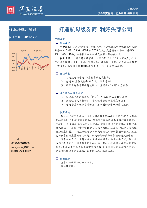【华安证券】【20191203】打造航母级券商 利好头部公司-15页