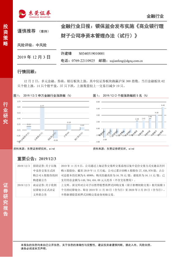 【东莞证券】【20191203】银保监会发布实施《商业银行理财子公司净资本管理办法(试行)》-3页