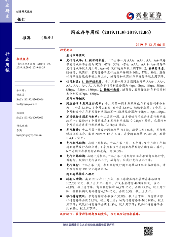 【兴业证券】【20191206】同业存单周报-13页