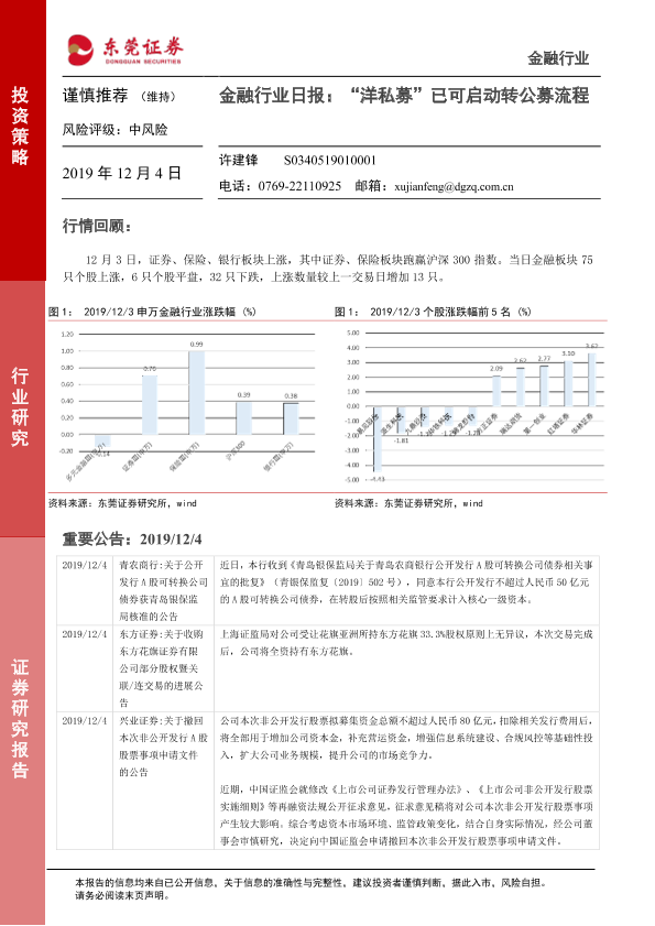 【东莞证券】【20191204】金融行业日报:“洋私募”已可启动转公募流程-4页