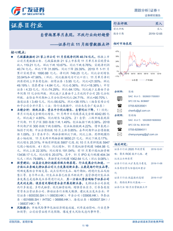 【广发证券】【20191205】证券行业11月经营数据点评:自营拖累单月表现,不改行业向好趋势-10页