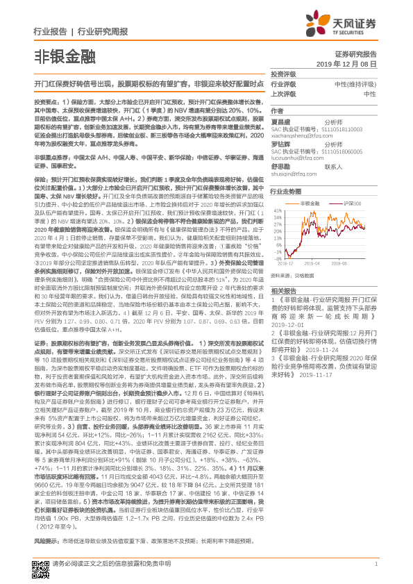 【天风证券】【20191208】非银金融行业研究周报:开门红保费好转信号出现,股票期权标的有望扩容-8页