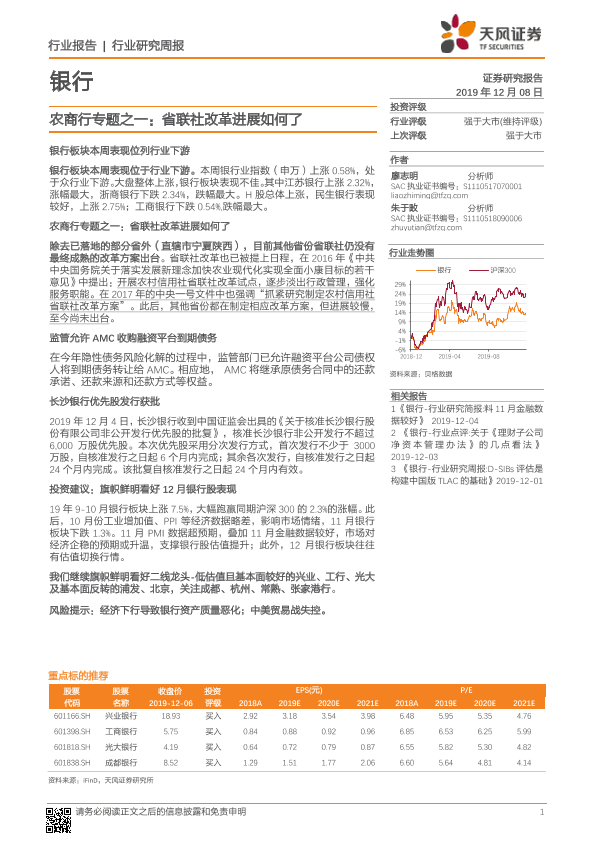 【天风证券】【20191208】银行行业研究周报:农商行专题之一:省联社改革进展如何了-14页