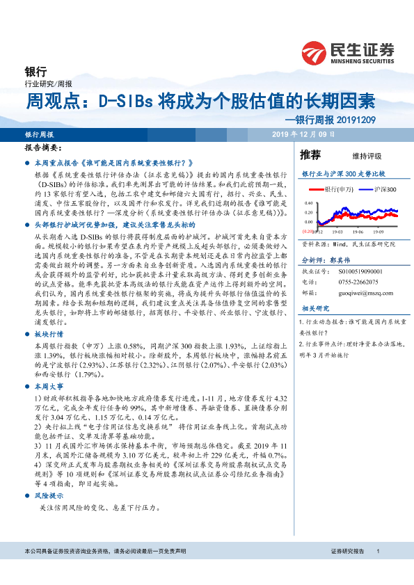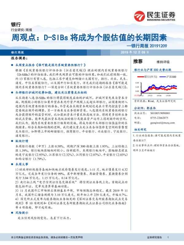 【民生证券】【20191209】银行周报:D-SIBs将成为个股估值的长期因素-12页