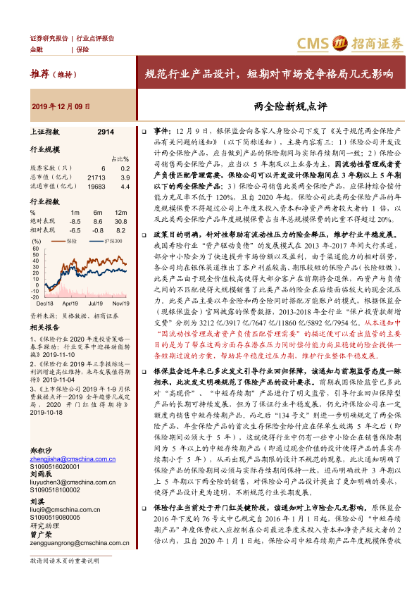 【海通证券】【20191209】两全险新规点评:规范行业产品设计,短期对市场竞争格局几无影响-3页